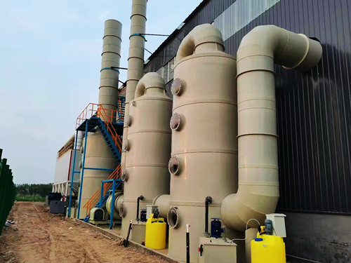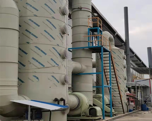 在廢氣處理工程中必不可少的設備有兩種,一種是通風設備,另一種是廢氣凈化設備。而通風設備就是本公司主營的玻璃鋼離心風機,廢氣凈化設備則根據(jù)具體的需求進行選擇,如下圖中的PP凈化塔就是比較常見的廢氣凈化裝置。除了凈化塔之外,活性炭吸附塔、等離子分解裝置、除臭裝置等都是用來凈化廢氣的。在使用時玻璃鋼離心風機通過管道與這些設備連接在一起。下圖是玻璃鋼離心風機與廢氣處理裝置的使用圖展示。