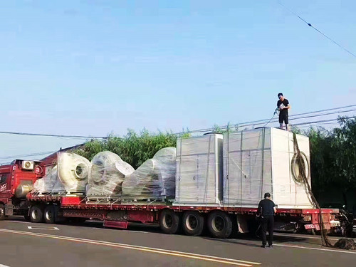 今天計劃發出兩批玻璃鋼離心風機,一批發往河北衡水,另一批計劃發往浙江寧波鎮海某工業園區的風機受到疫情的影響暫停發貨。河北衡水客戶訂購的一批風機型號比較大,其中有5臺安裝隔音裝置的風機,另外7臺是14C的型號,下面是風機發貨圖。
