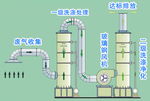 玻璃鋼洗滌塔在使用的時候均與玻璃鋼風(fēng)機(jī)搭配使用(參照上圖)。兩者之間使用玻璃鋼風(fēng)管和彎頭等配件連接在一起。